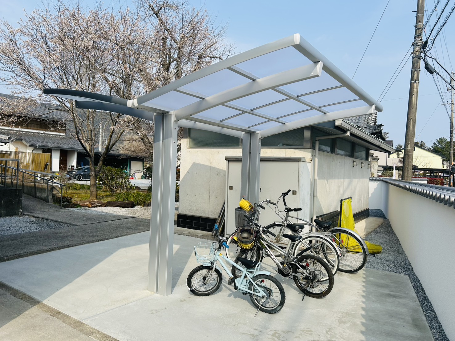 【施工内容】外塀(エアウォール)施工・駐輪場整備・植栽移植